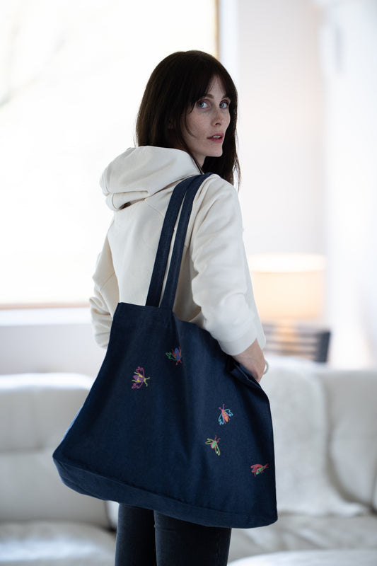 RazprodanoTorba shopping Jeans in mali žužki