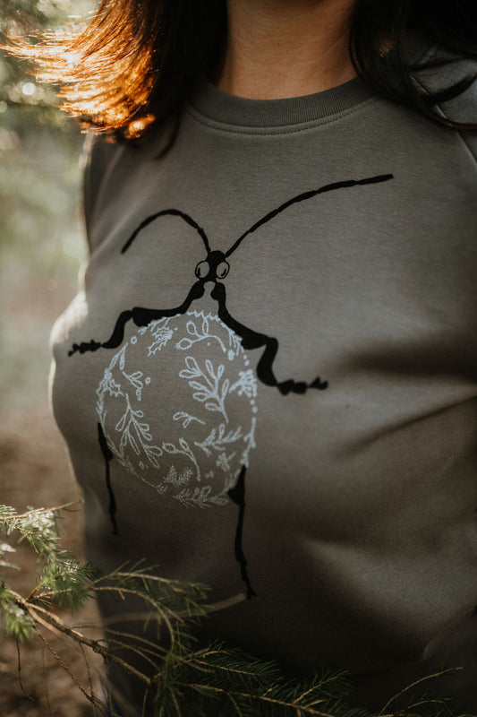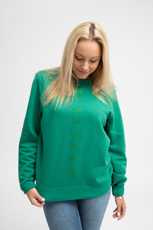 Pulover v petrolej barvi z bakrenimi bučkami in tipalkami žužka