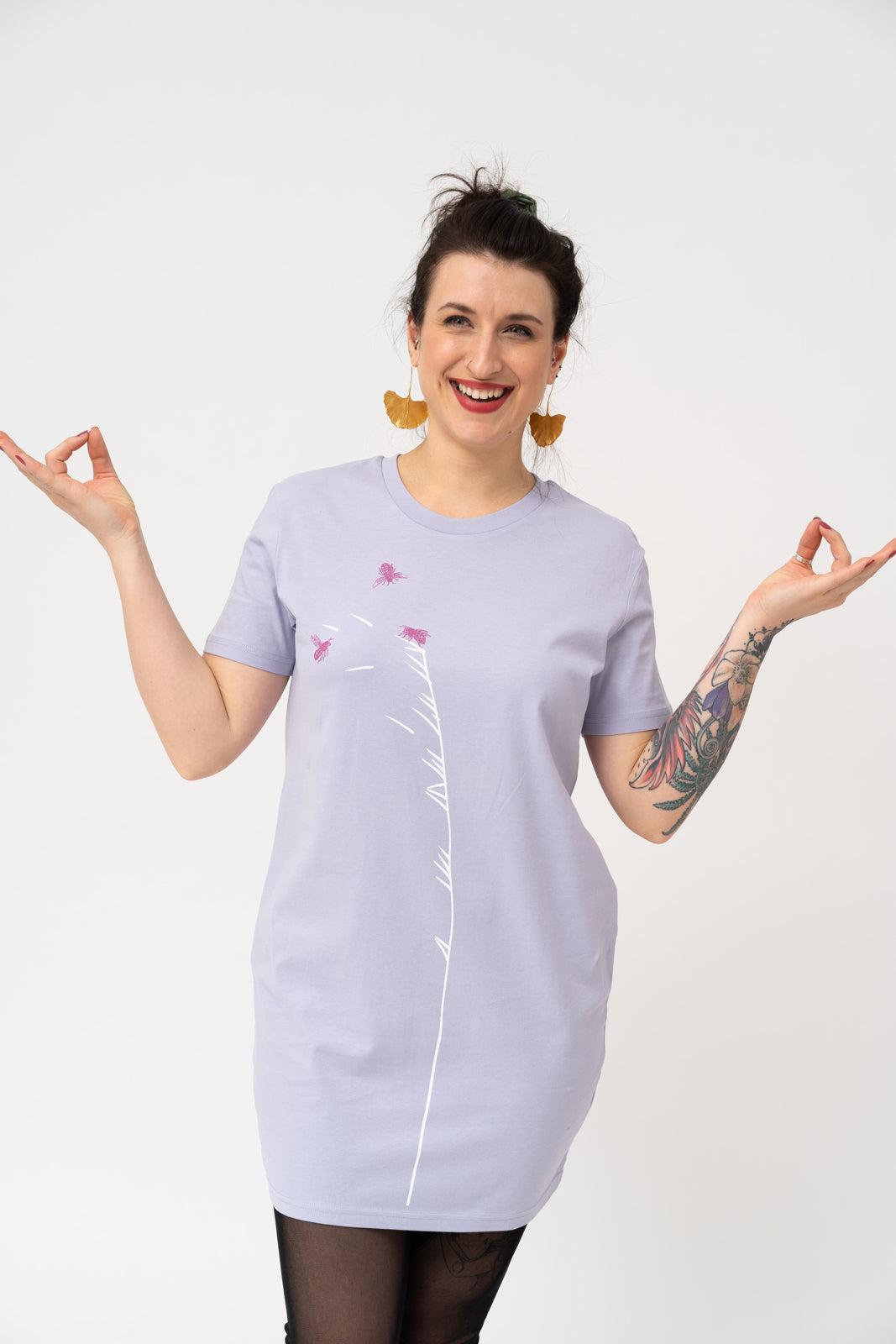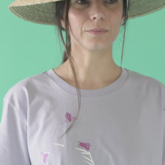 - Sleeve hem and bottom hem with wide double needle topstitch